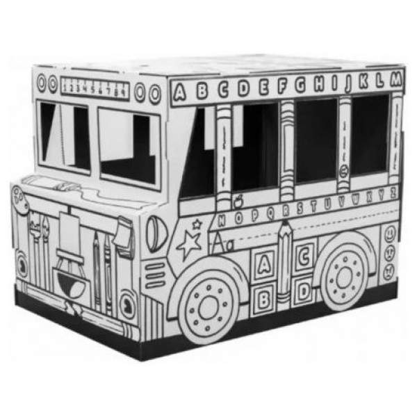 Juguete de cartón en forma de autobus escolar para pintar y jugar. Fabricado con cartón corrugado resistente y fácil de construir sin necesidad de adhesivos.Diseño interactivo, puedes abrir y cerrar puertas, ventanas y trampillas de techo. Cumple con: Artículo 18 de la Directiva sobre seguridad de los juguetes 2009/48/CE y el Reglamento sobre juguetes (seguridad) de 2011.Fabricado con cartón certificado FSC® y totalmente reciclable. Dimensiones completamente ensamblado Al 78,74 x An 114,3 x Pr 83,82 cm
