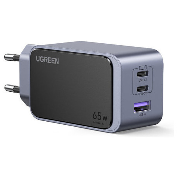 Ugreen Nexode Air 65W sieninis kroviklis, USB + 2x USB-C pilkos spalvos Ordenador portátil, Teléfono móvil, Ratón, Portátil, Batería portátil, Tableta Gris Corriente alterna Carga rápida Interior (Es