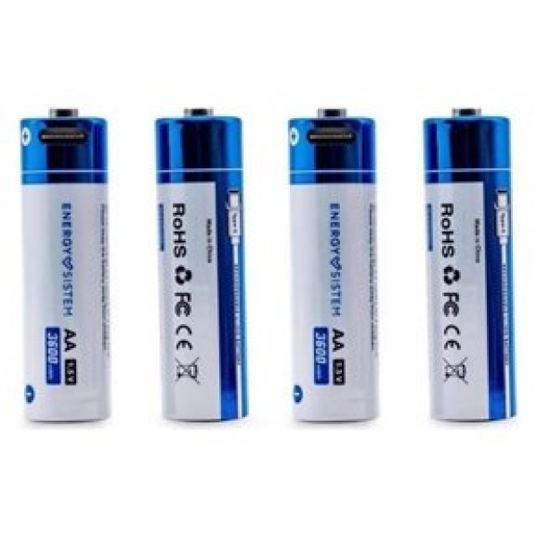 | Características | - Juego de pilas AA recargable - Tiempo de recarga: 2,5 horas - Capacidad: 3405 mWh / 2270 mAh - Voltaje de salida: 1,5 V - Potencia máxima de salida: 3,75 W - Modo de carga: Tipo C |