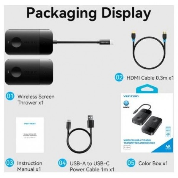 Adaptador/Transmisor de vídeo inalámbrico USB Tipo-C - HDMI Vention ADOBB