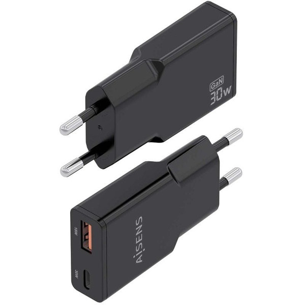 - Cargador GaN USB-C 30W para cargar portátiles, móviles, cámaras y tablets etc. Diseño muy elegante, moderno y práctico.- Este cargador con diseño ultra delgado facilita su transporte durante el viaje, permitiendo guardarlo en el bolsillo del pantalón, en el bolso, en la mochila, en el maletín, etc.- Este cargardor cuenta con la tecnología GaN que ofrece una serie de ventajas, incluyendo una mayor eficiencia energética, menor generación de calor, mayor capacidad de corriente y menor tamaño y peso en comparación con los cargadores tradicionales de silicio. Estas ventajas hacen que los cargadores GaN sean una opción cada vez más popular para usuarios que buscan una carga más rápida, eficiente y sostenible.- Tecnología AI (chip inteligente) incorporado que detecta el tipo de protocolo del dispositivo conectado para maximizar tanto la compatibilidad como la velocidad de carga.- Cargue su dispositivo USB-C o USB-A de forma fácil y sencilla.- Múltiples protecciones contra sobrecarga, cortocircuito, lo que garantiza la máxima seguridad para su dispositivo.- Este cargador puede cargar simultáneamente 2 dispositivos USB-A y USB-C a máxima velocidad.