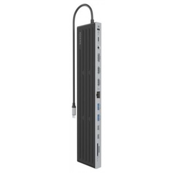 ASUC-13P042-GR – USB-C Dock 13 en 1, USB-C a 2xHDMI, 1xDisplayport, 1xRJ45, 3xUSB-A, 2xUSB-C, 1xUSB-C PD, 1xSD, 1xMicro SD, 1xAudio, 1xRanura Kensington, 30cm