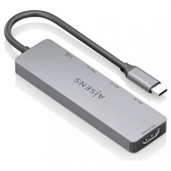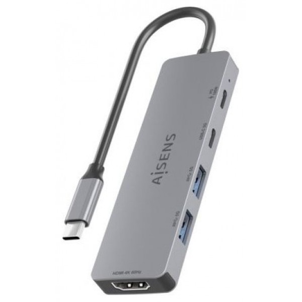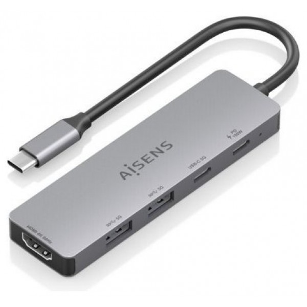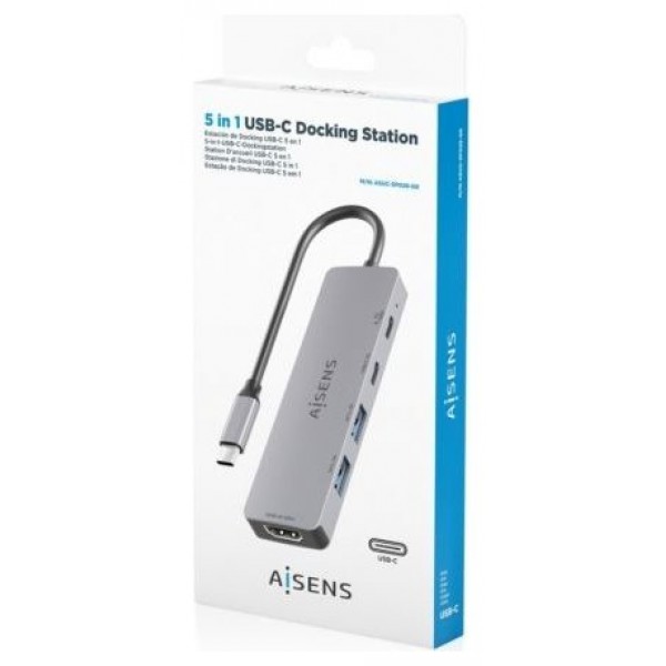 Docking USB Tipo-C Aisens ASUC-4P002-GR/ 1xHDMI 4K/ 2xUSB/ 1xUSB Tipo-C PD/ Gris Conversor USB-C..