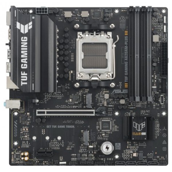 ASUS TUF GAMING A620AM-PLUS. Fabricante de procesador: AMD, Socket de procesador: Zócalo AM5, Procesador compatible: AMD Ryzen 7000 Series, AMD Ryzen 8000 Series, AMD Ryzen 9000 Series. tipos de memoria compatibles: DDR5-SDRAM, Memoria interna máxima: 256 GB, Tipo de ranuras de memoria: DIMM. Interfaces de disco de almacenamiento soportados: M.2, SATA III, Tipos de unidades de almacenamiento admitidas: HDD & SSD, Niveles RAID: 0, 1, 5, 10. Tipo de interfaz ethernet: 2.5 Gigabit Ethernet. Componente para: PC, Factor de forma: micro ATX, Familia del chipset: AMD
