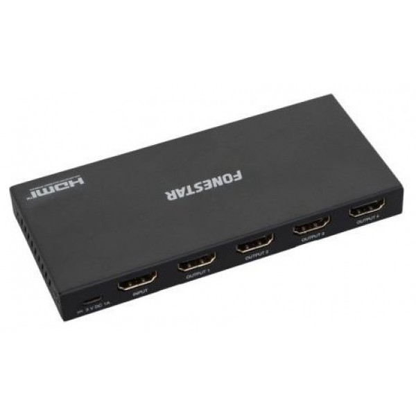 Distribuidor HDMI 2.0 (1 entrada x 4 salidas).Distribuye la misma imagen en varias TV. Se puede mostrar el mismo contenido de vídeo y audio en diferentes TV para ser visto por más personas.