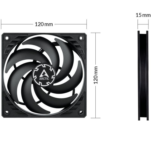 Con un amplio rango de velocidad y la innovadora tecnología PWM Sharing (PST), la velocidad del ventilador del P12 Slim PWM PST se puede controlar en sincronía con la de otros ventiladores. Los ventiladores PST de ARCTIC incorporan su propia solución de conexión en cadena y, además del conector, cuentan con otra toma para conectar uno o hasta cuatro ventiladores PST en serie.