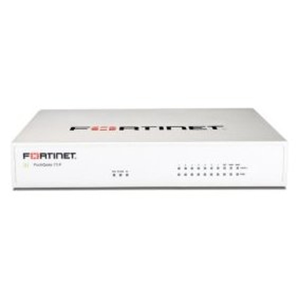 Fortinet FortiGate 70F. Rendimiento del cortafuegos: 10 Gbit/s, Rendimiento de VPN: 6,5 Gbit/s, IPS / IDS rendimiento: 1400 Mbit/s. Algoritmos de seguridad soportados: IPSec. TecnologÃa de conectividad: Alámbrico, Ethernet LAN, velocidad de transferencia de datos: 1000 Mbit/s, Puerto de consola: RJ-45. Factor de forma: Escritorio. Voltaje de entrada AC: 100-240 V, Frecuencia de entrada AC: 50 - 60 Hz, Corriente de entrada: 1 A