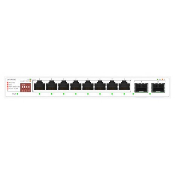 ASUS QG-U1080. Tipo de interruptor: No administrado. Puertos tipo básico de conmutación RJ-45 Ethernet: 2.5G Ethernet (100/1000/2500), Cantidad de puertos básicos de conmutación RJ-45 Ethernet: 8. Tabla de direcciones MAC: 16000 entradas. Estándares de red: IEEE 802.3ab, IEEE 802.3bz, IEEE 802.3u, IEEE 802.3x, IEEE 802.3az. Voltaje de entrada DC: 12 V