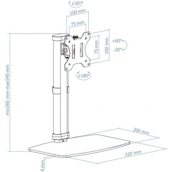 - Rango de ajuste para la altura del soporte: 360-540 mm