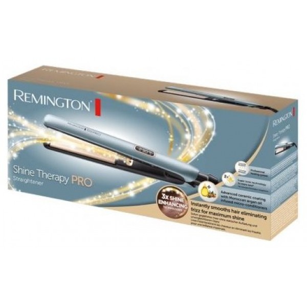 Las placas de la plancha Shine Therapy Pro tienen un revestimiento de cerámica avanzada que cuida del cabello mientras lo alisa. Los acondicionadores con aceite de argán marroquí se liberan en el cabello a cada pasada, le devuelven el brillo y lo dejan suave y sedoso.