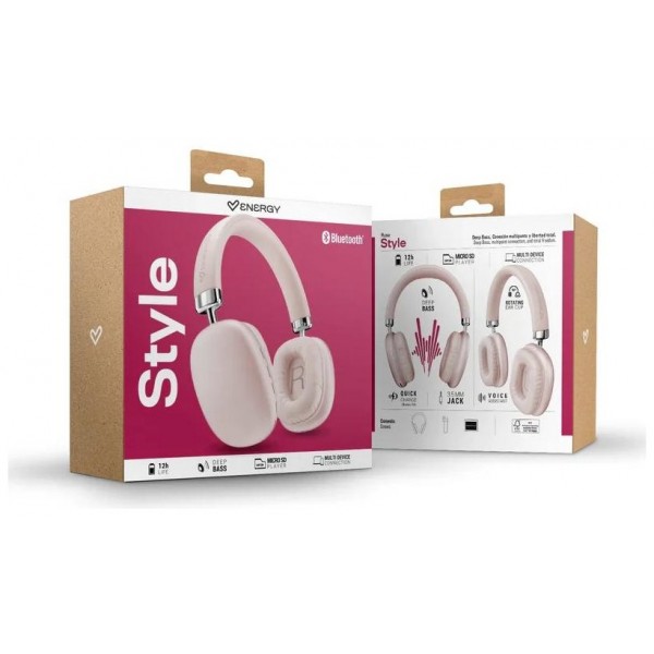 | Características | - Duración de la batería (12 h) - Graves profundos - Reproductor MP3 con tarjeta microSD - Conexión multidispositivo - Carga rápida (15 min/3 h) - Auriculares supraaurales - Bluetooth - Entrada de audio de 3,5 mm - Asistente de voz - Certificación FSC Contenido - Auriculares Style - Cable USB tipo C |