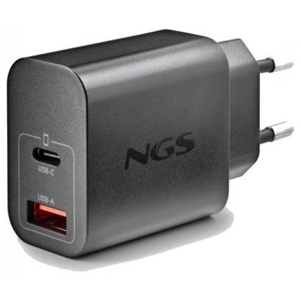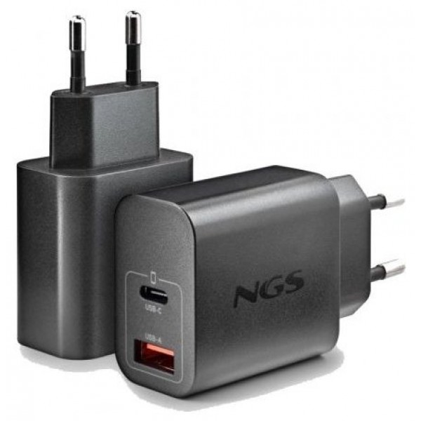 - Cargador GaN de pared con una salida USB-C (PD & PPS) y una salida USB-A QC 3.0 de 20W de potencia máxima.