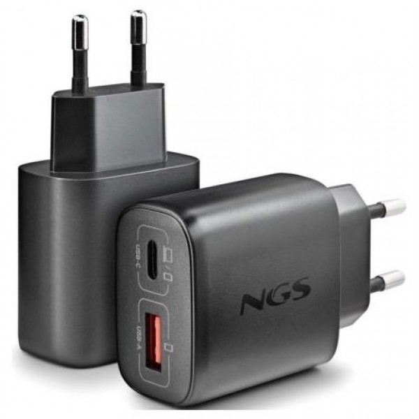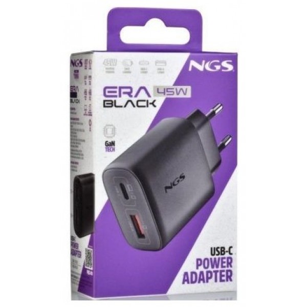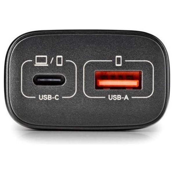 - Rápido cargador GaN de pared que incorpora una salida USB-C (PD & PPS) y una salida USB-A Quick Charge 3.0, ofreciendo hasta 45W de potencia total.