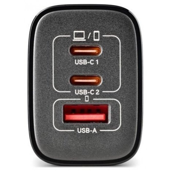 Cargador GaN de pared ultrarrápido de 65W con 3 Puertos: 2 USB-C + USB-A
