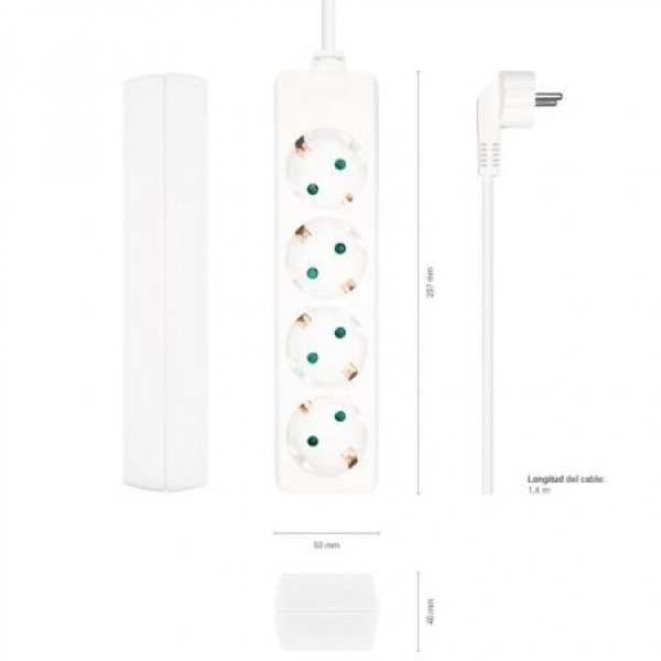 - Base multiple (Regleta de enchufes) 4 tomas sin interruptor con cable 3x1.5mm2