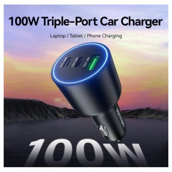 - Nombre: Cargador de coche de tres puertos USB C+C+A (100W+30W+18W) tipo ABS negro