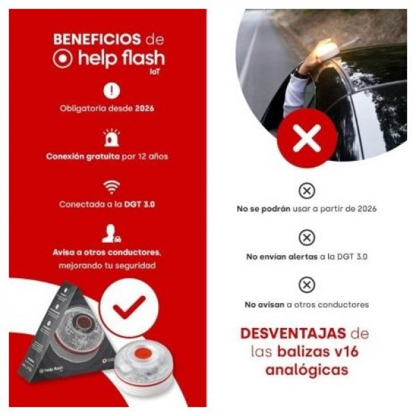 Además de su función de señal luminosa, esta baliza V16 integra tecnología NB-IoT que, en caso de emergencia, permite al resto de usuarios de la vía conocer tu ubicación y mejorar tu seguridad.