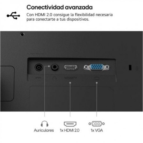 | Conexión | - 1 x HDMI - 1 x D-Sub (Resolución máx. 75Hz) - Salida para Auriculares 3 Anillos (Solo Sonido) |