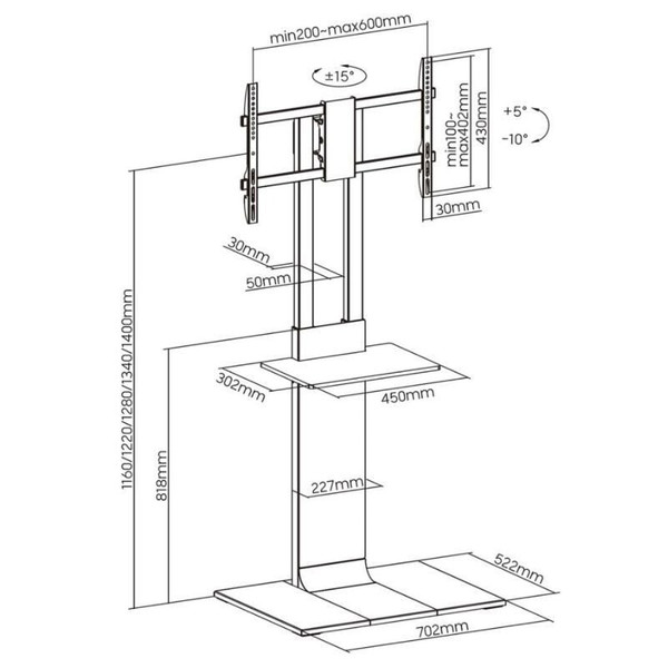- Ajustes de altura del TV: 1160 / 1220 / 1280 / 1340 / 1400 mm