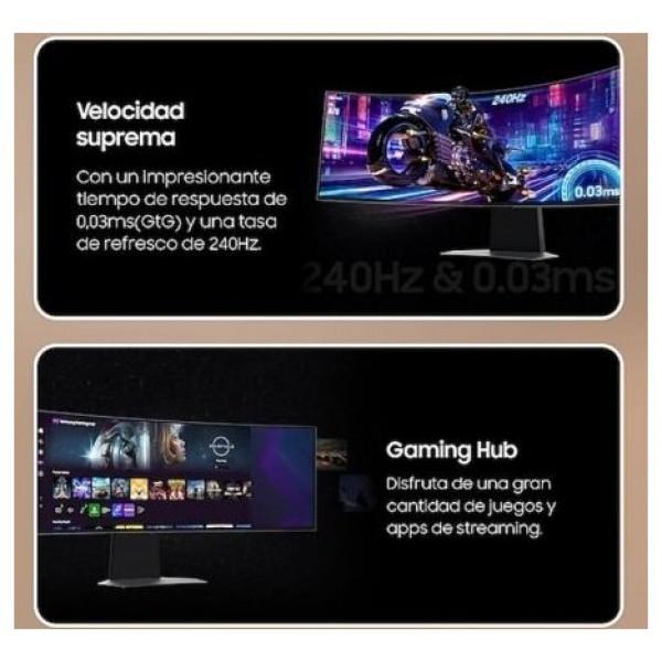 Tiempo de respuesta (GtG) casi instantáneo, de solo 0,03 ms. Las conexiones HDMI 2.1 y DisplayPort también te ayudan a ganar ventaja, ya que ofrecen tasas de refresco de 240 Hz en resolución UHD.