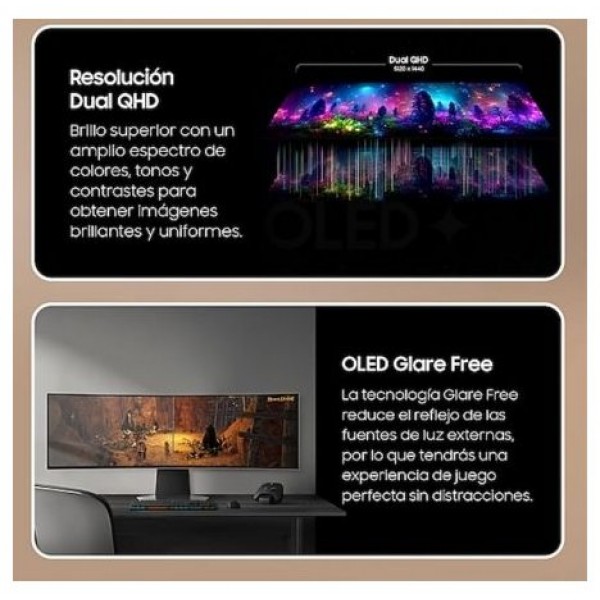 Disfruta de tus juegos al máximo gracias a la tecnología OLED . Descubre cómo tus contenidos cobran vida en una pantalla con resolución Dual QHD (5.120 x 1.440) con una nitidez y precisión inigualables.