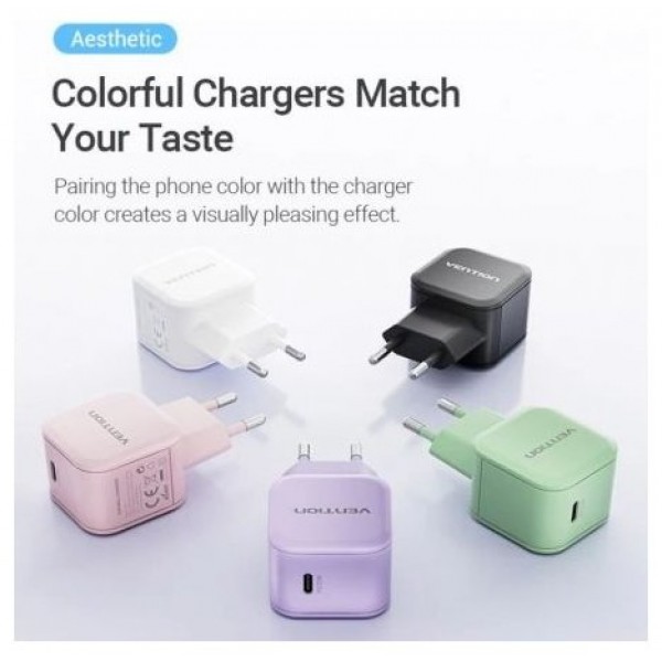 Cargador de pared Vention con 1 puerto USB-C de 20 W