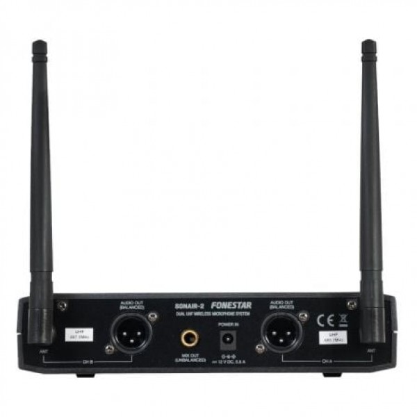 formado por un receptor doble y dos transmisores de micrófono inalámbrico de mano con cápsula dinámica unidirecciónal que maximiza la captación directa de la voz y rechazo de ruidos y sonidos