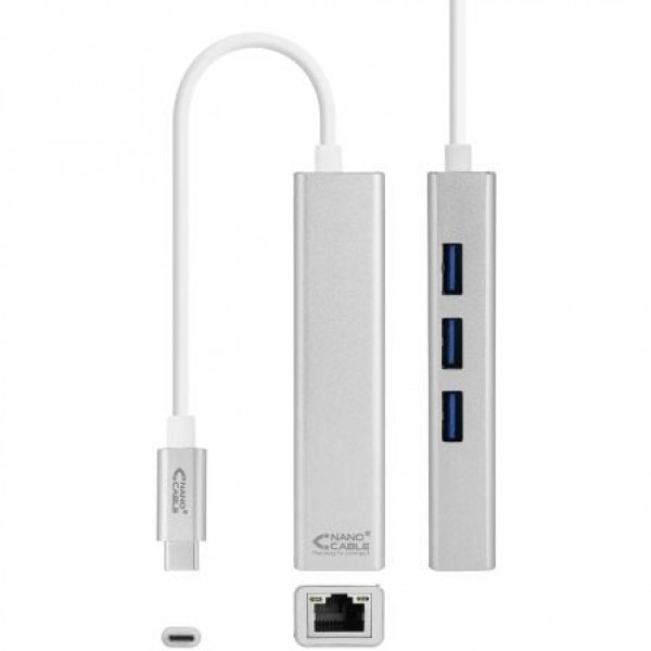 - 1 x Conversor USB-C a Ethernet Gigabit + 3XUSB 3.0, plata, 15 cm