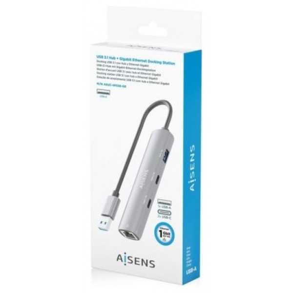 Hub USB Tipo-C Aisens ASUC-4P040-GR/ 2xUSB Tipo-C/ 1xUSB/ 1xRJ45/ GrisASUC-4P040-GR – Dock USB-C a E..