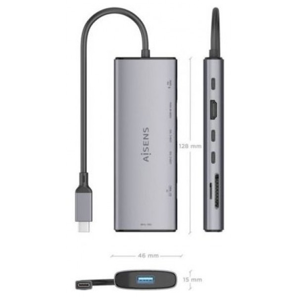 Docking USB Tipo-C Aisens ASUC-7P032-GR/ 1xHDMI 4K/ 1xUSB/ 2xUSB Tipo-C/ 1xRJ45/ 1xLector Tarjetas/ ..