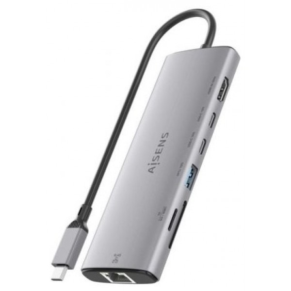 Docking USB Tipo-C Aisens ASUC-12P017-GR/ 2xHDMI 4K/ 4xUSB/ 1xUSB Tipo-C/ 1xRJ45/ 1xDisplayPort/ 1xL..