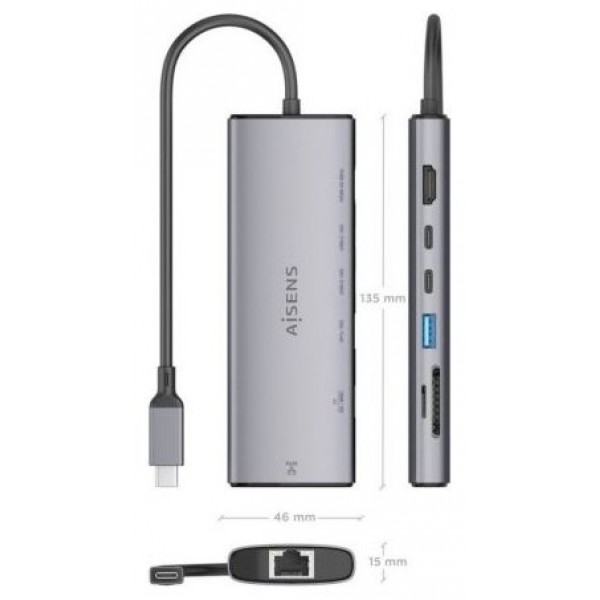 AISENS – USB-C DOCK 7 en 1, USB-C a 1xHDMI, 1xRJ45, 1xUSB-A 10G, 2xUSB-C 10G, 1xSD, 1xMICRO SD, GRIS, 20CM
