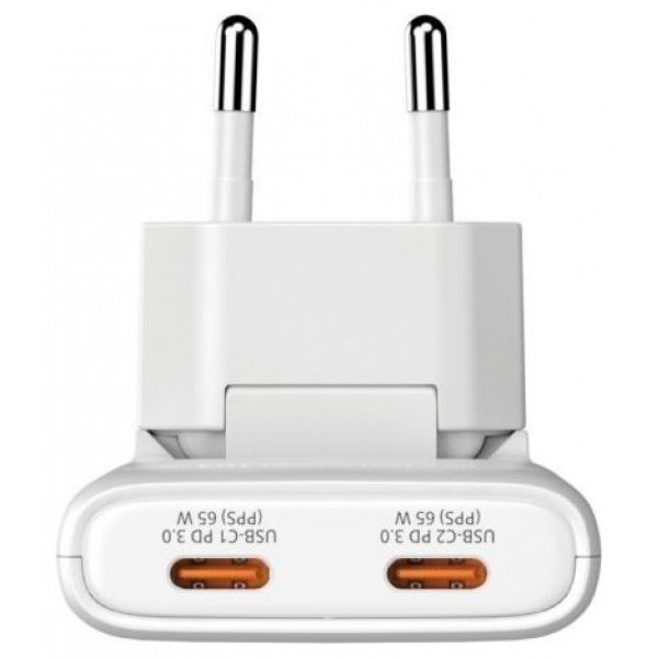 Cargador GaN Fold "n" Go Enchufe UE de 65W y 2 puertos - Blanco