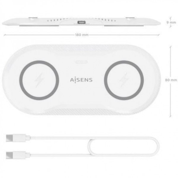 AISENS® – Cargador inalámbrico USB-C de 15W 2 en 1 para Móvil Auriculares, Blanco