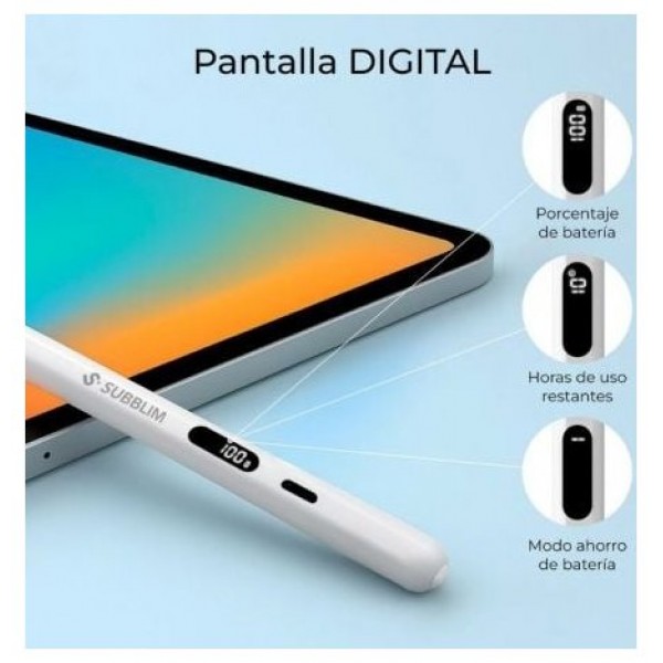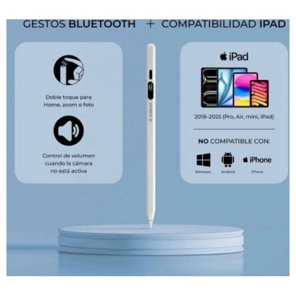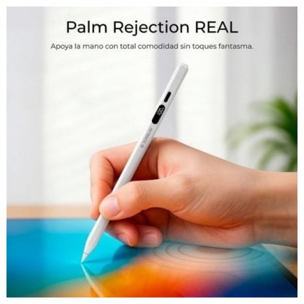 Escribe y dibuja como en papel en tu iPad. NoteFlow Pen for iPad combina Palm Rejection para apoyar la mano sin toques fantasma y sensibilidad a la inclinación para sombrear o variar el grosor con un gesto natural. La punta POM de 0,9 mm ofrece control fino y deslizamiento suave, incluye 2 repuestos para mantener siempre un trazo consistente. (Especificaciones según hoja de producto).Mantén el control del tiempo con su pantalla digital: muestra el % de batería, las horas de uso restantes y el modo de ahorro para evitar sorpresas en clase o reunión. Con hasta aprox. 10 h de autonomía por carga y USB-C con recarga ?30 min, el lápiz acompaña tu jornada sin atarte a un enchufe.Acelera tu flujo con gestos Bluetooth: doble toque para volver a Inicio, hacer zoom o tomar una foto, cuando no usas la cámara, los botones pueden controlar el volumen. Empareja en Ajustes > Bluetooth como ?Pencil?, solo la primera vez.Compatibilidad amplia: iPad Pro (incl. 2024 11"/13"), iPad Air 3?7 (incl. 6 11"/13"), iPad mini 5?7 e iPad 6?11. No compatible con iPhone, Android, Windows ni iPad anteriores a 2018.Incluye: NoteFlow Pen, cable USB-C, manual y 2 puntas. Especificaciones: batería Li-Po 130 mAh, entrada 5 V/200 mA, USB-C, temp. de trabajo 0?35 °C