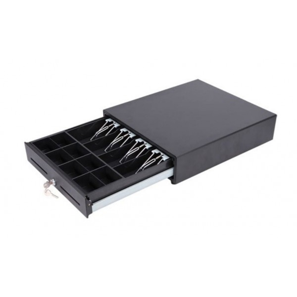Cajón de tamaño reducido (330 x 335 x 90 mm). 8 compartimentos de monedas y 4 de billetes.Apertura e..