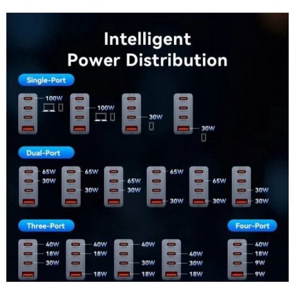 - Salida (USB-C1/C2): 5V⎓3A; 9V⎓3A; 12V⎓3A; 15V⎓3A; 20V⎓5A (100.0W máx.)