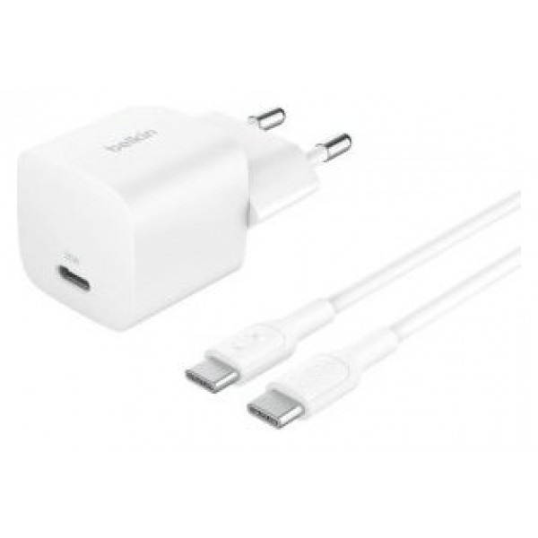 CARGADOR DE PARED BELKIN WCA012KQ1MWH-B6 USB-C PD 25W + CABLE USB-C A USB-C 1m COLOR BLANCO